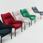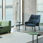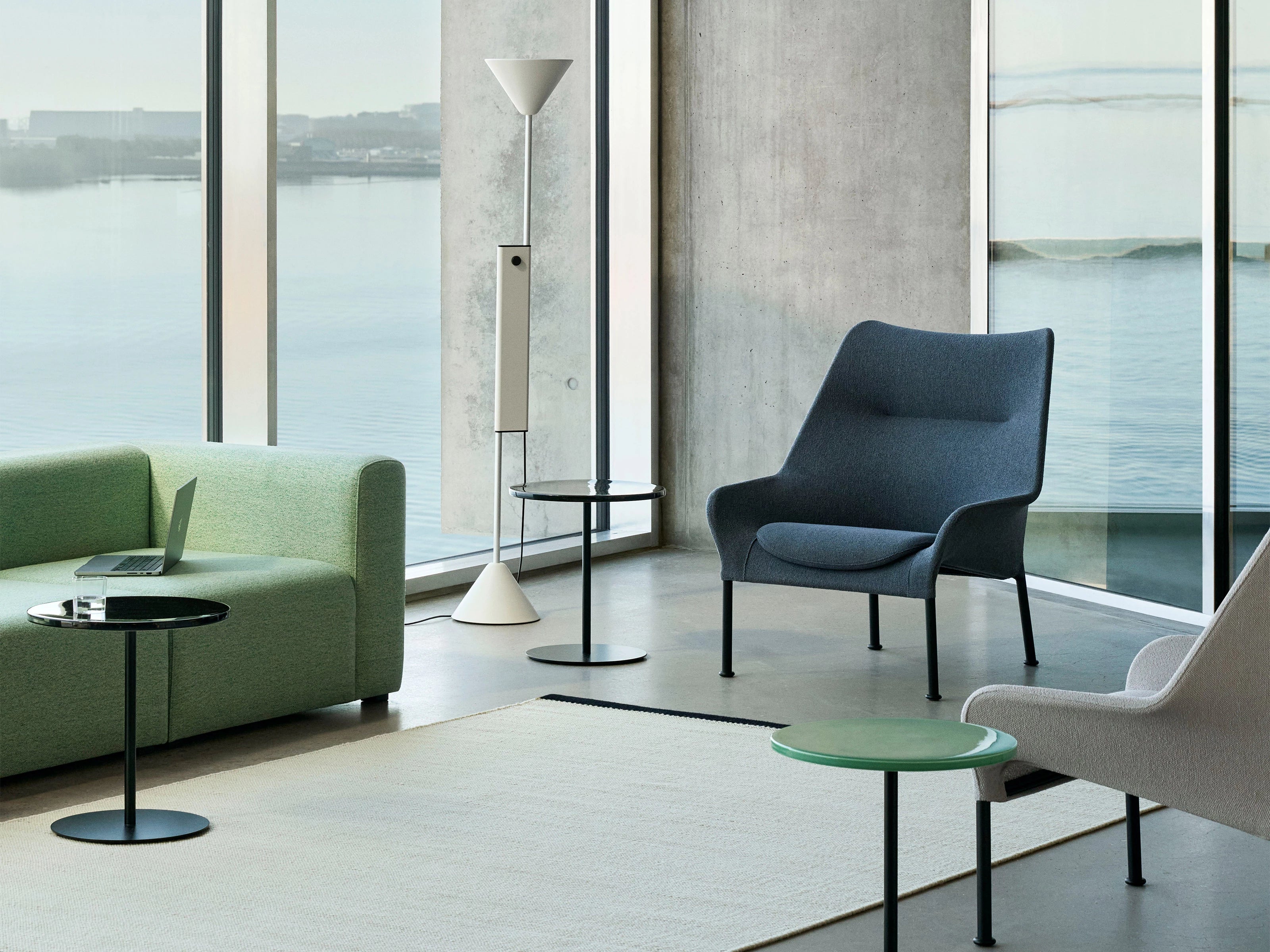 Designed for HAY by Jonas Forsman, the O2 Lounge Chair is a spacious and inviting seating option that uses minimal materials without compromising comfort, support, or aesthetics. Through innovative material processes and production techniques, the chair features a tubular steel frame with self-supporting, shrink-fitted fabric, forming a voluminous shape that adapts to the user's posture while providing firm support.