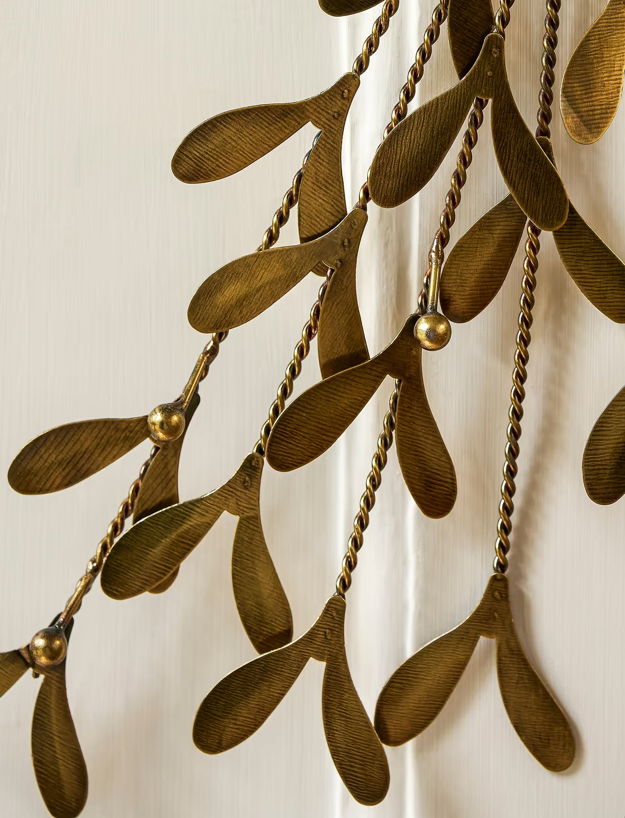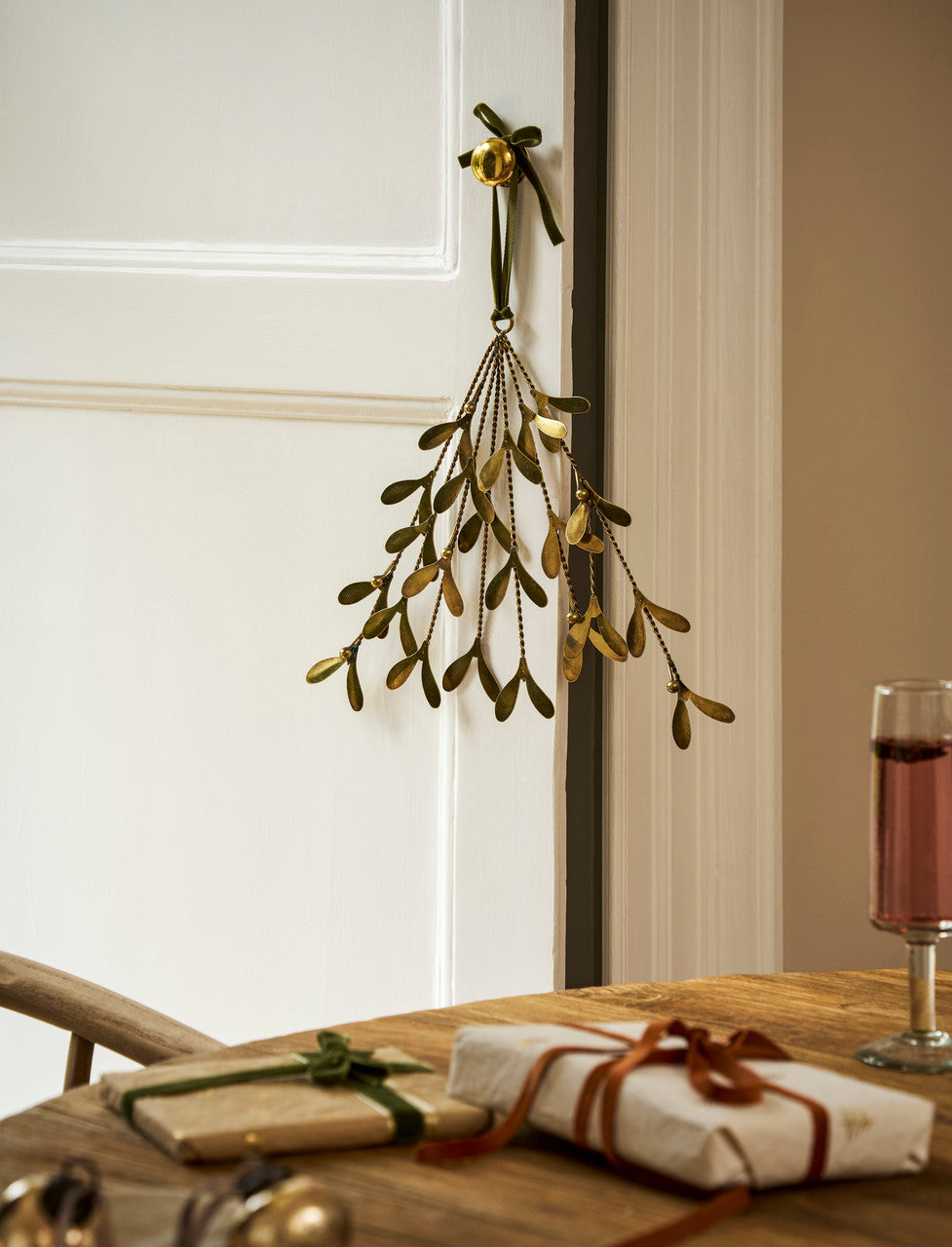 Meet a loved one beneath the mistletoe every year with our stunning Cromwell Hanging Mistletoe. Crafted from durable steel with a warm antique brass finish, this stylish bunch of mistletoe is one you can hang in a doorway Christmas after Christmas. Complete with berries, this realistic bunch has a loop where you can add your own choice of ribbon – we think a berry-coloured velvet bow would look lovely.