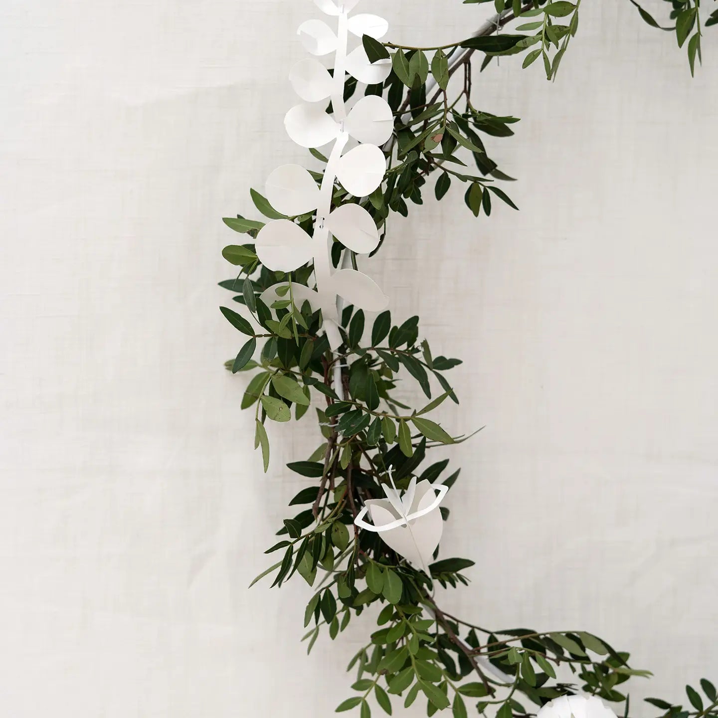 > Sustainable: produced in the Netherlands from FSC paper. The easiest little DIY bouquet in serene white All you need to make this little bouquet of flowers or a lovely small wreath is the contents of this set. There’s no need to cut or glue anything: everything has been perforated and creased for you, and the flower stems – the threadwire – are included. Cut the flower wire to the desired length, guide it through the perforated slits and put together your bouquet. Letterbox bouquet FIELD is a doubly sustainable bouquet: it will never wilt and the flowers are cut from FSC certified paper. Additionally, FIELD is the perfect gift to send someone: It is a very special kind of greeting card that can, once received, be transformed into a cute little bouquet! The flat A5 format can easily be sent in an envelope and will fit through every letterbox! Info 2 cards in A5 format (4 punched-out flowers). 2 metres of flower thread. The biggest thistle is 8cm in circumference when fold.