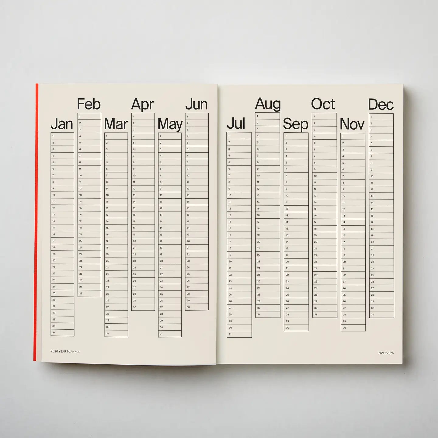 Our planners are printed sustainably in the UK using smooth, blot-free music sheet paper internally and a lovely red, and foiled, board on the cover. Each planner includes: - a 2026 year planner overview to mark particular days - a quick reference 2026 & 2027 calendar to check what days your dates land on - day per page - to-do list space per day - 'remember' list space per day