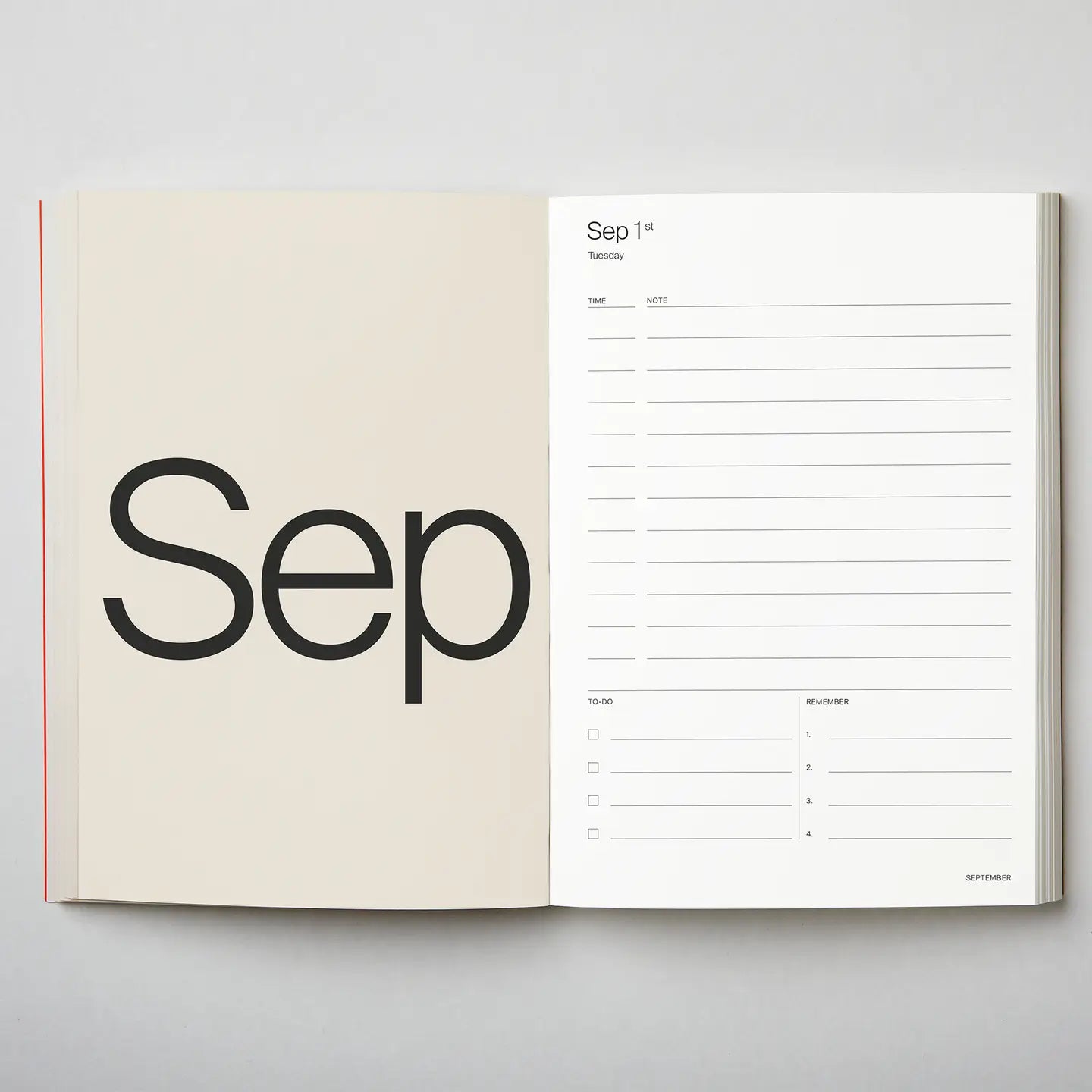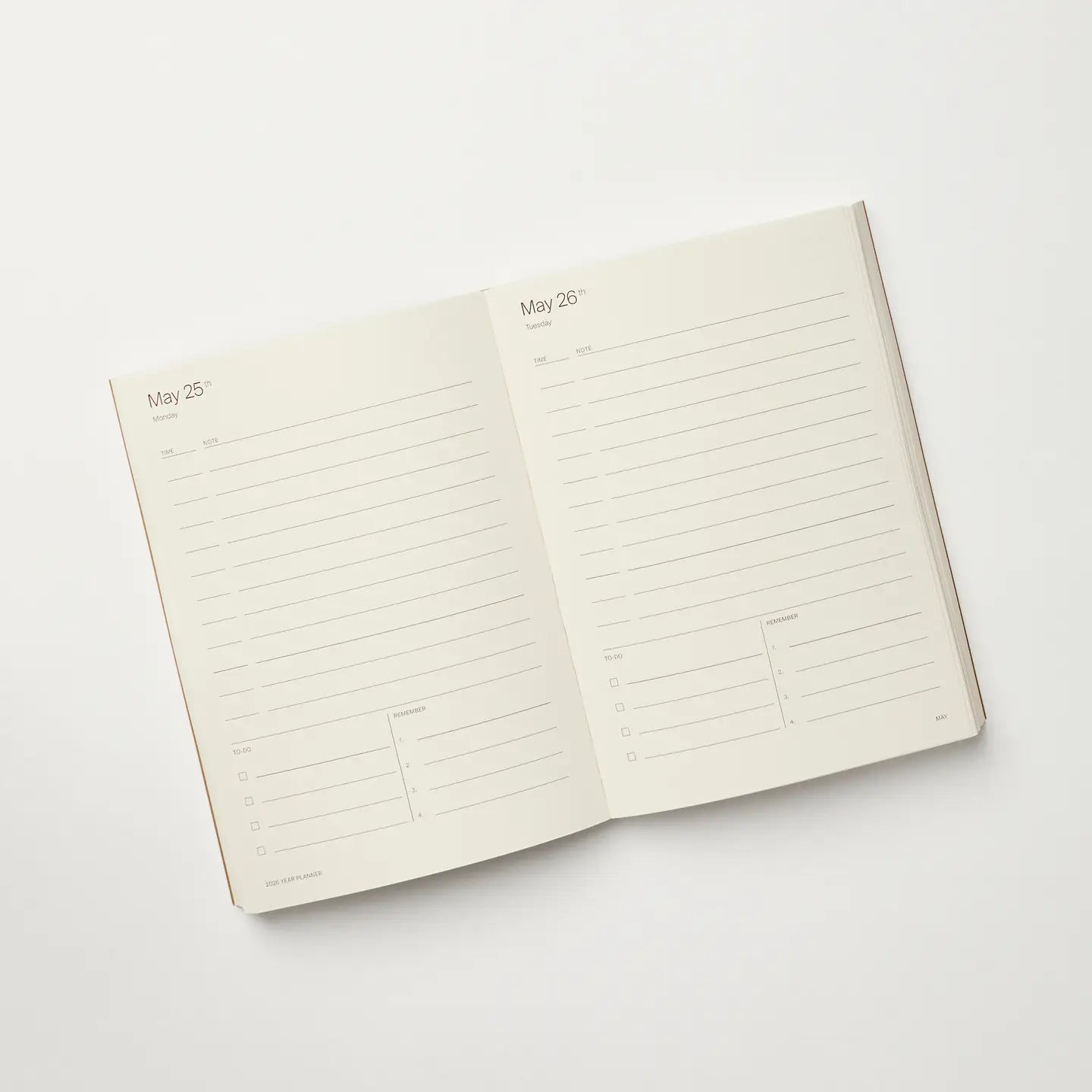 A beautiful muted nut-brown cover with punchy black foiling. This diary is perfect for those looking for a day-per-page planning tool that lays flat (best for those who are left handed).