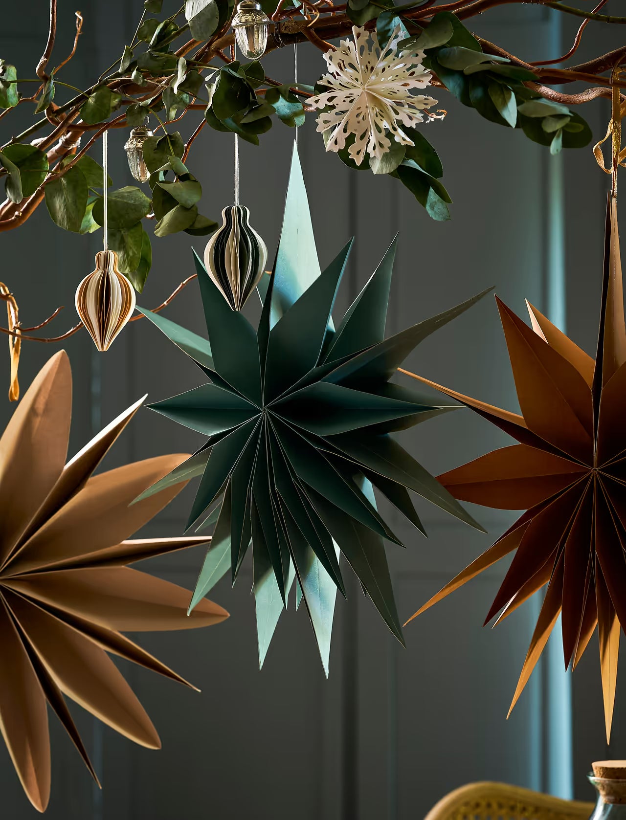 Our large Maddox Classic Christmas Star makes a striking addition to a modern Christmas decor scheme. It’s made from rosemary green paper, with three magnet catches that make it easy to fold out and fold away flat for easy assembly and storage.