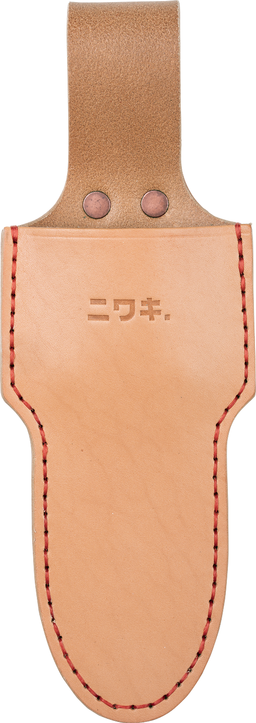 Ignore the cowboy jokes, holsters are great. They keep tools close to hand, stop them ending up on the compost heap, and save your pockets. Chunky 3.5mm leather with copper rivets and hand stitched with double ply waxed thread. Starts off clean and pale but soon matures to a nice dark rich tone.