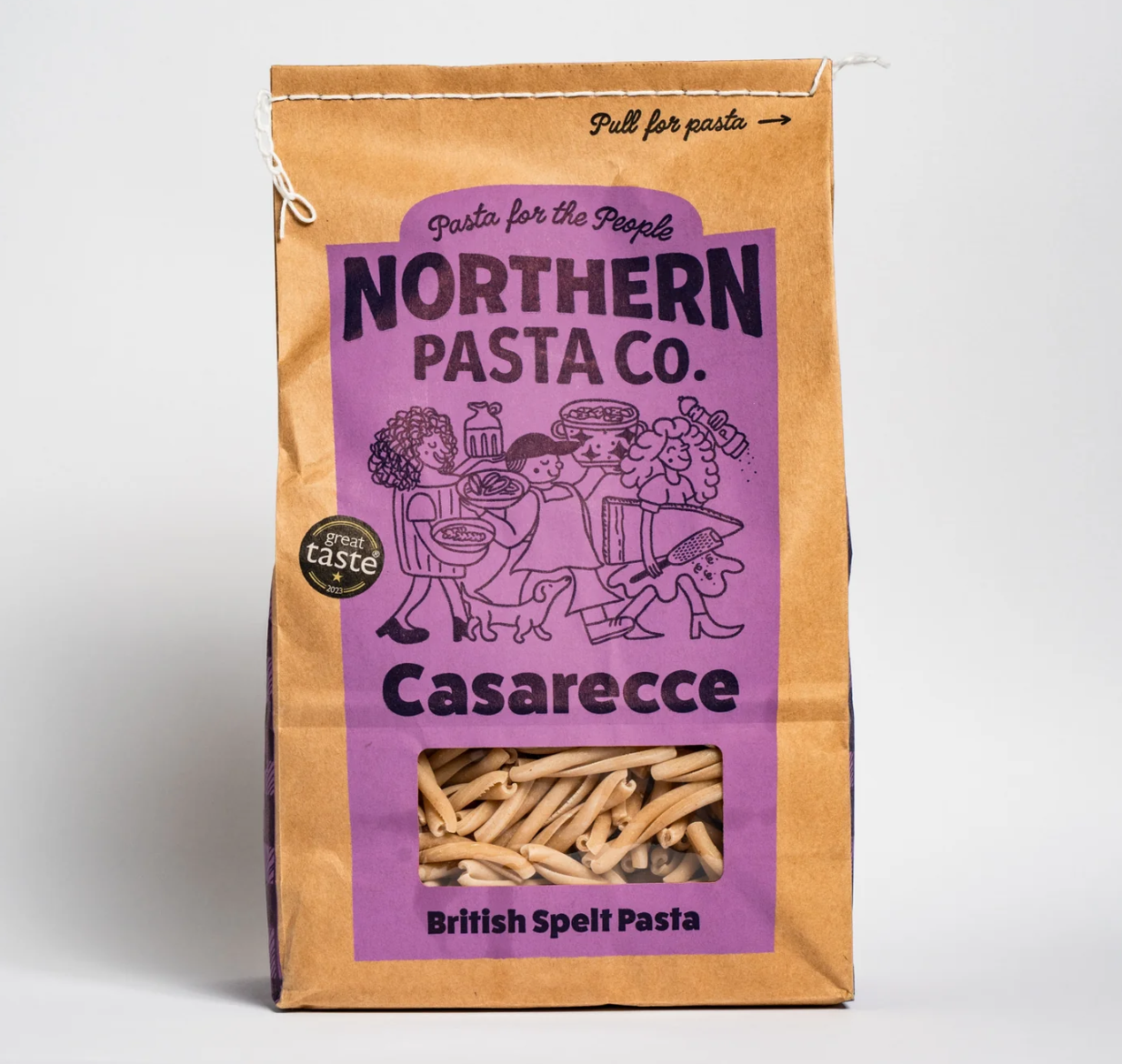 Our award-winning Casarecce, gives total comfort thanks to it's curves and grooves giving the ultimate al dente bite every time. Perfect for holding pestoes and creamy sauces.  Crafted consciously using traditional Italians methods and with our beautiful British spelt; Northern Pasta Casarecce is unbeatably delicious.