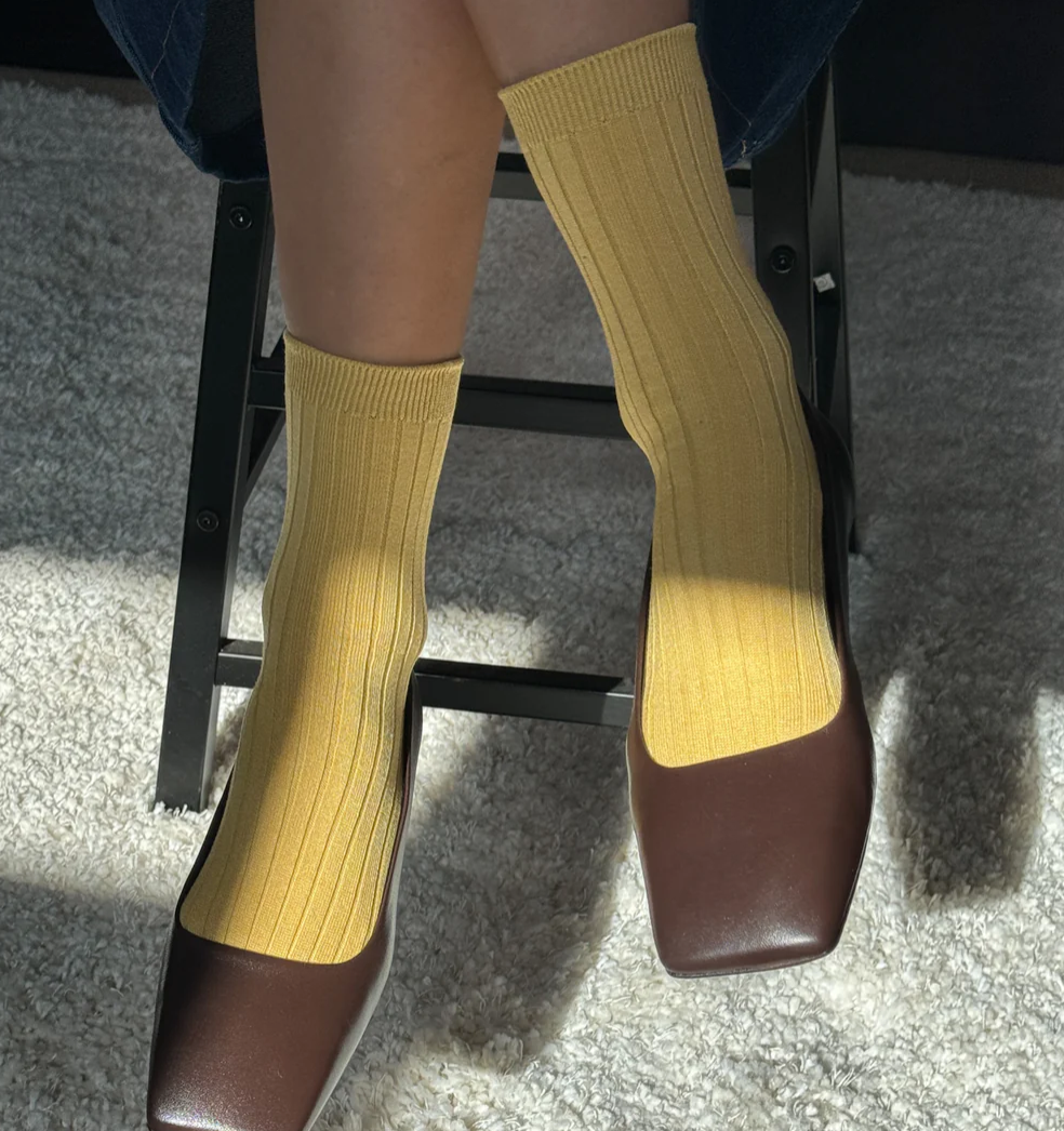 This is the sock that will make you throw all your other socks away. Classically ribbed, perfect height, breathable cotton blend yarn in the most beautiful assortment of colours. She will pair with any shoe, sandals, sneakers, mules, clogs, boots, she is your go to sock!