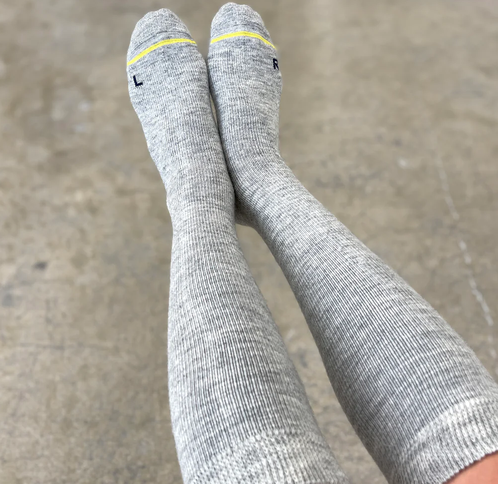 A warm welcome for the Hiker Socks, where luxury meets functionality. Crafted from a Merino wool blend, these comfy companions offer the perfect mix of comfort, style, and durability. They feature an extended leg to comfortably hug your calf, a seamless toe, and cushioned footbed for an extra layer of comfort. Whether you're hiking or simply exploring, these socks are sure to elevate any outdoor adventure.