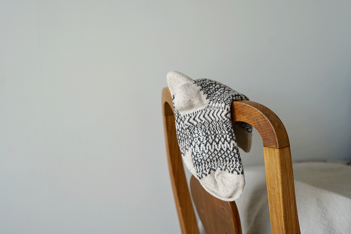 Material Detail: Shrink-proof wool was selected to produce these Jacquard socks. This plush material has volume similar to pile — enveloping the feet in softness and warmth.