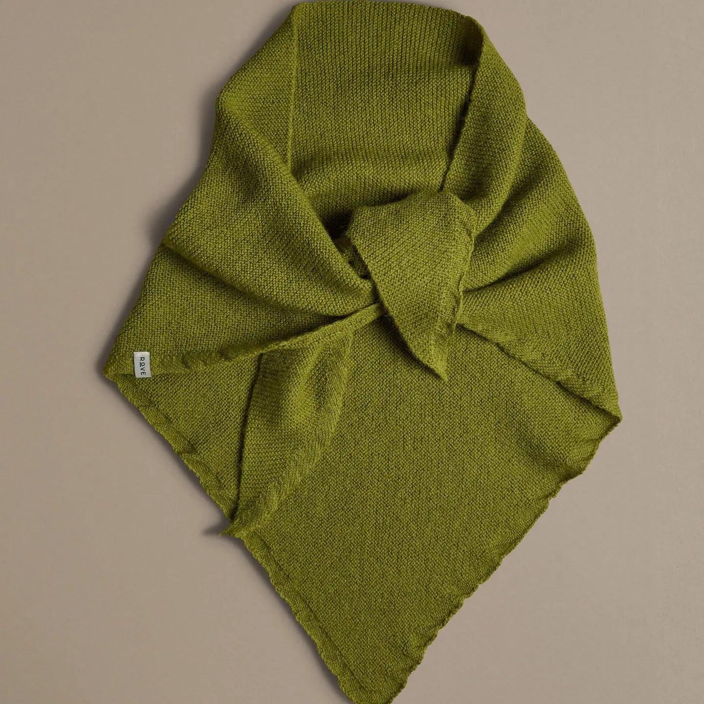Experience the rustic, hand-knitted feel of our garter stitch Triangle Scarf, perfect for layering and adding extra warmth when the clouds roll in and the wind picks up. This shawl features an irregular, textured stitch knitted in a zingy shade of green that was inspired by the sea lettuce found here on our Margate coastline. A resilient, eco-conscious item that will soften endlessly with time, and is a sustainable and stylish addition to any wardrobe. Materials: 100% British wool, spun and dyed in Oldham. Our wool is fully traceable and sourced from farms that do not practise mulesing. Made in Britain: Designed and knitted by ROVE studio in Margate. Dimensions: Longest side 150cm, depth 73cm.
