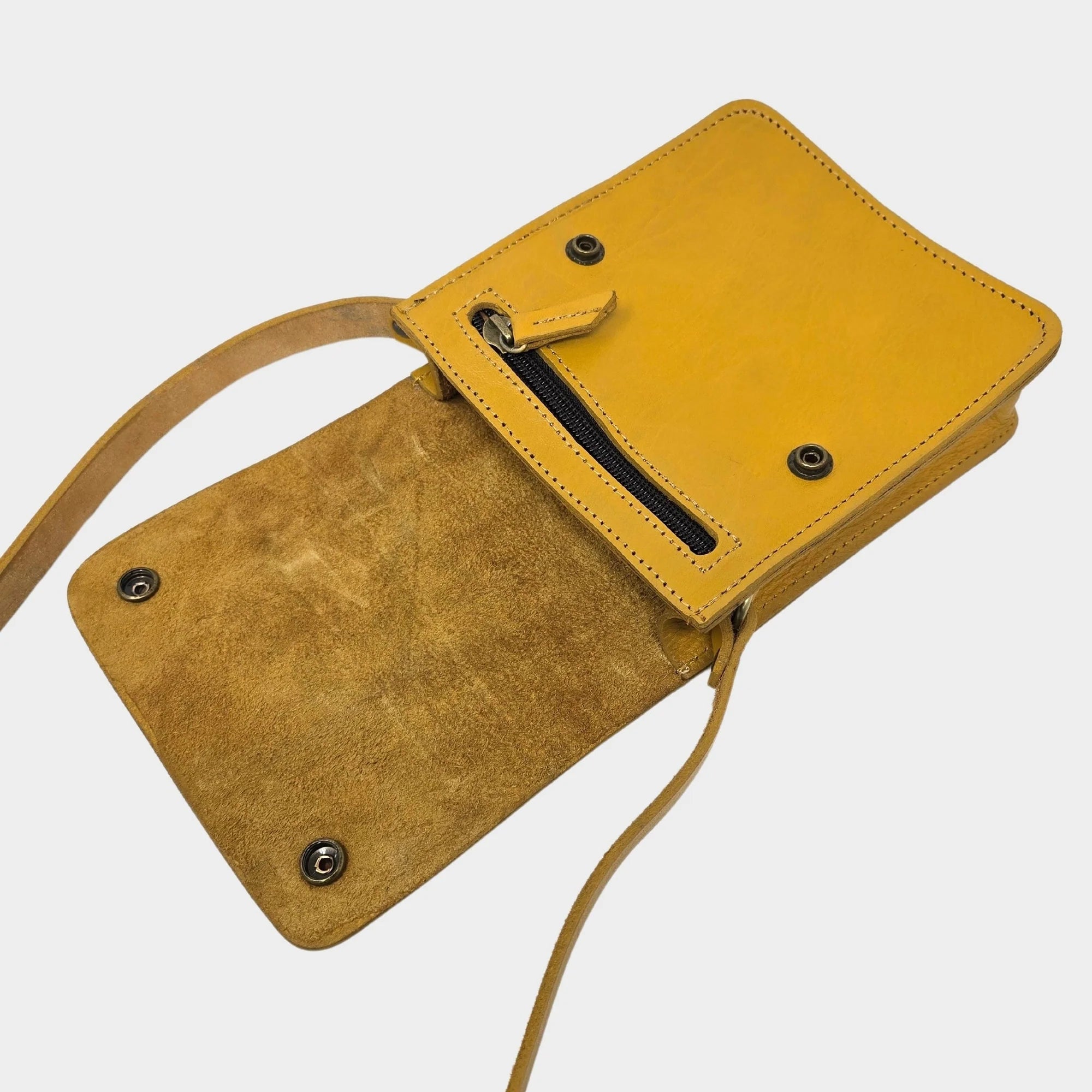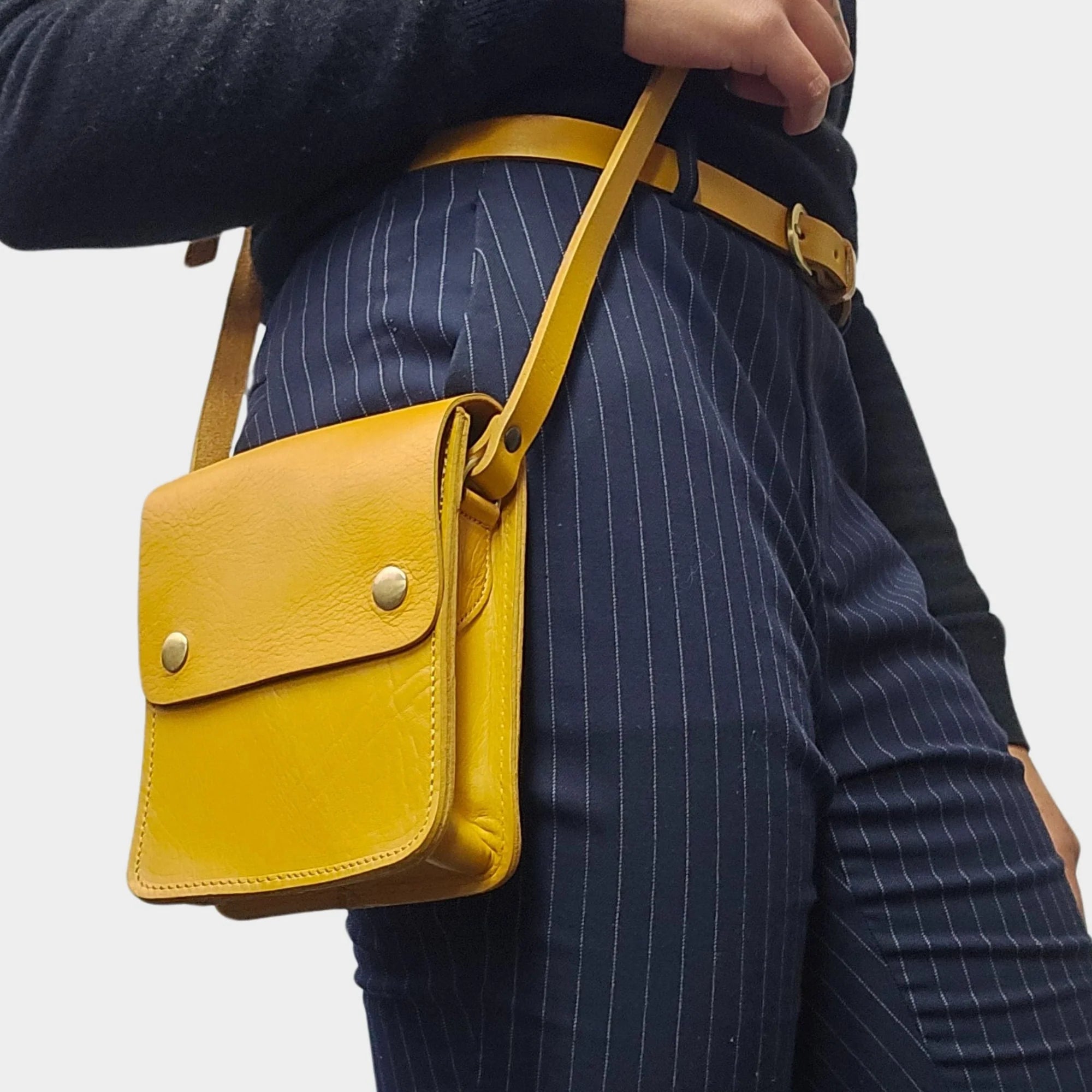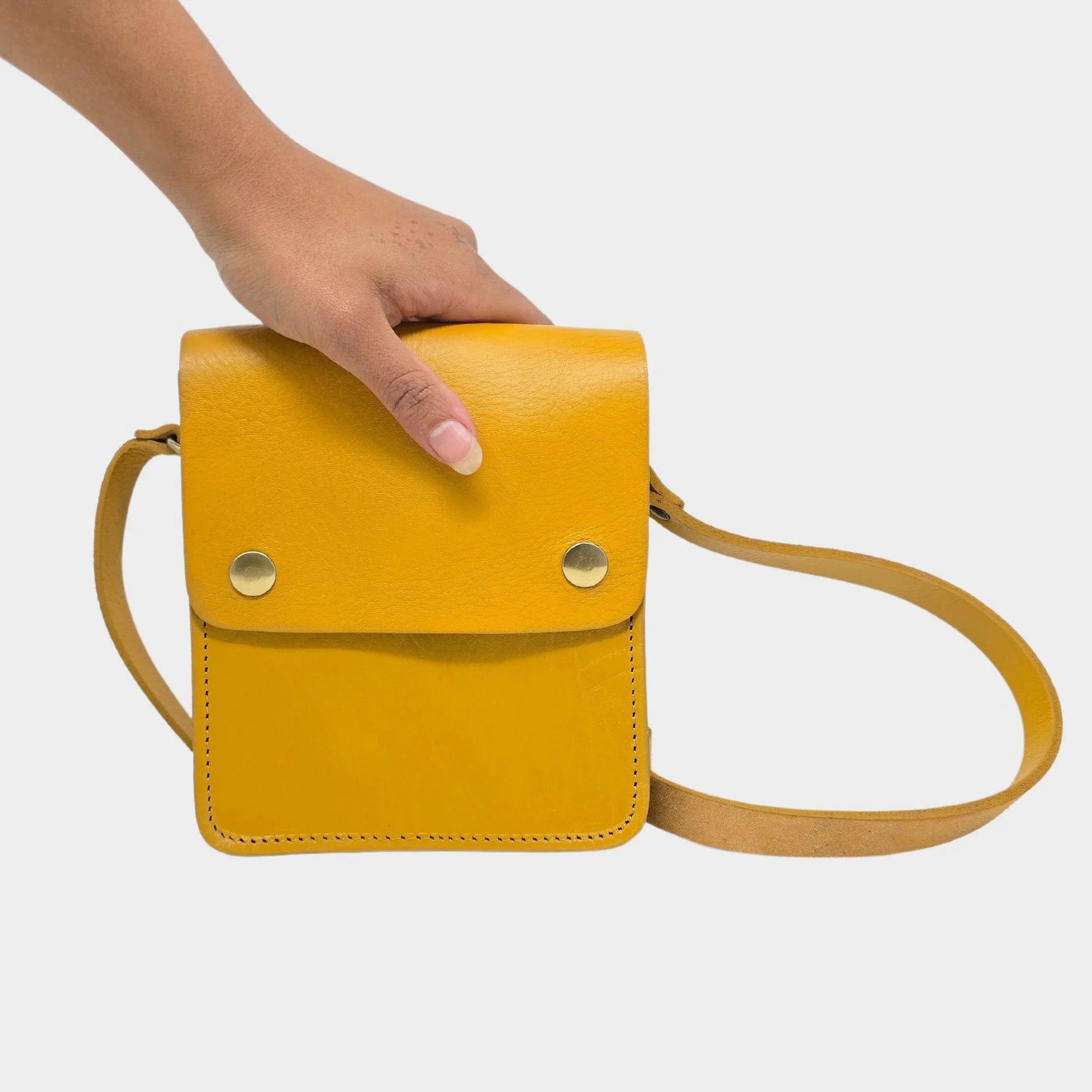 T + K Artisan Yellow Small Leather Crossbody Bag with Pop Closure