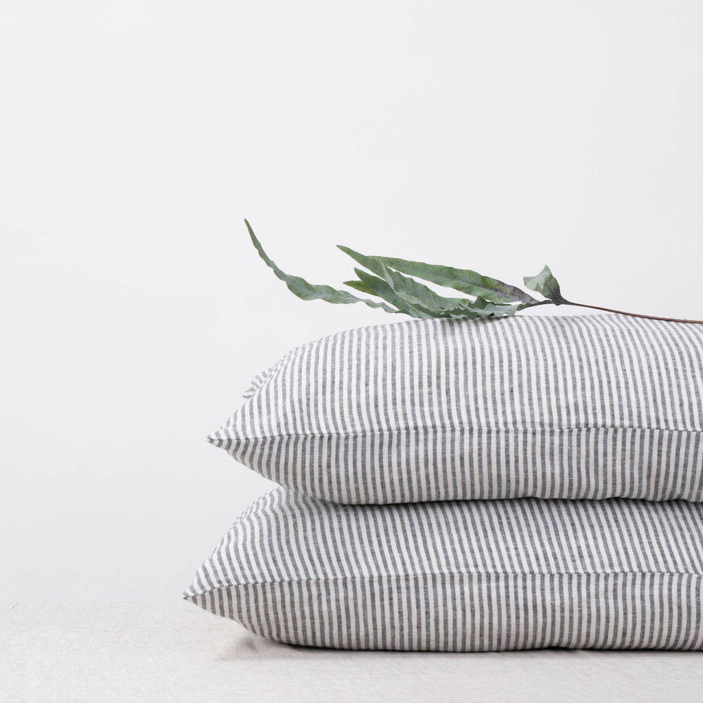 Linen Tales Thin Black Stripes Linen Duvet Cover & Pillowcase Set