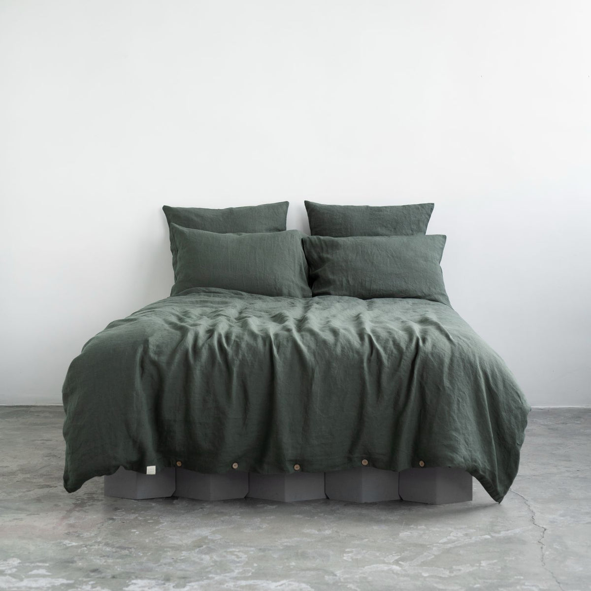Linen Tales Lemon Curry Linen Duvet Cover & Pillowcase Set