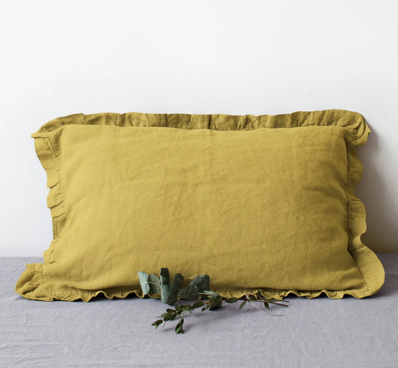 Linen Tales Linen Pillowcase with Frills, Lemon Curry
