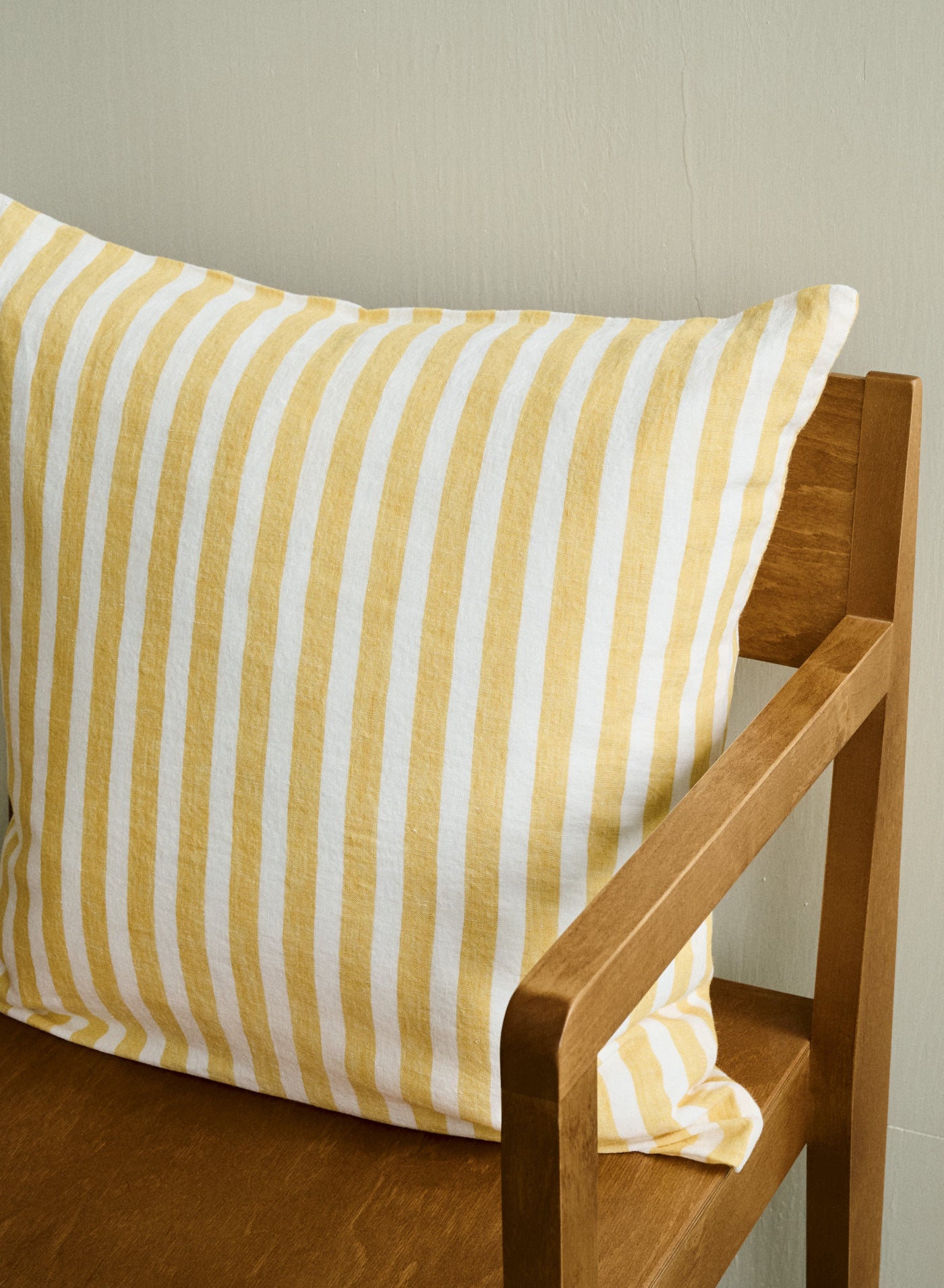 Linge Particulier 100% Linen Cushion Cover, 50x50cm - Yellow Stripe WAS £38