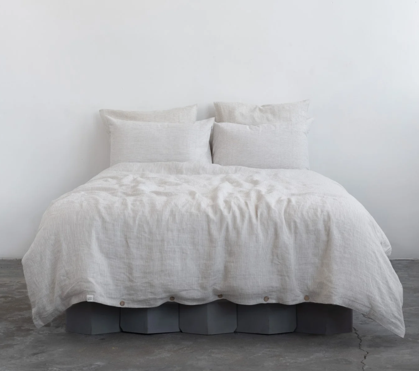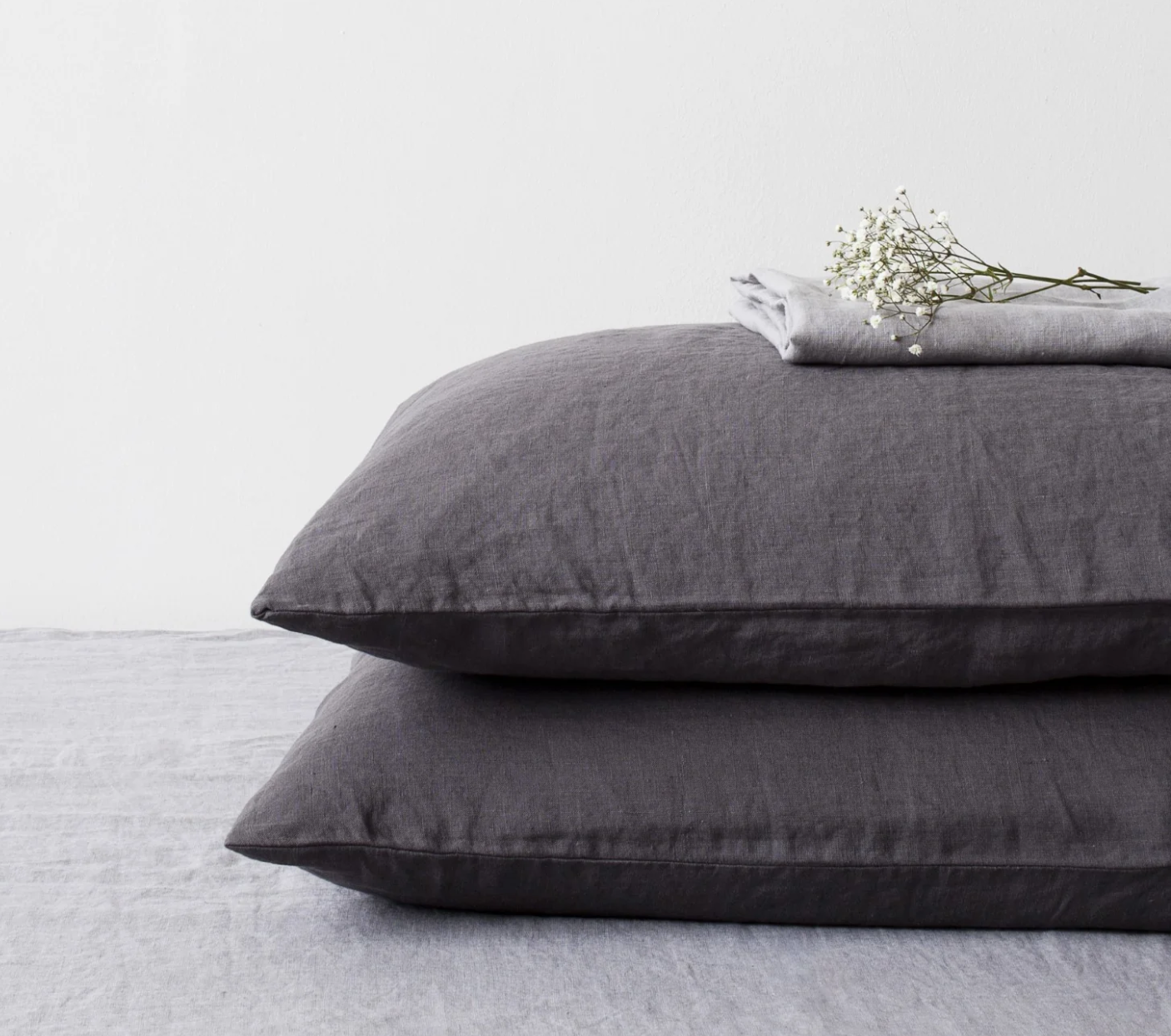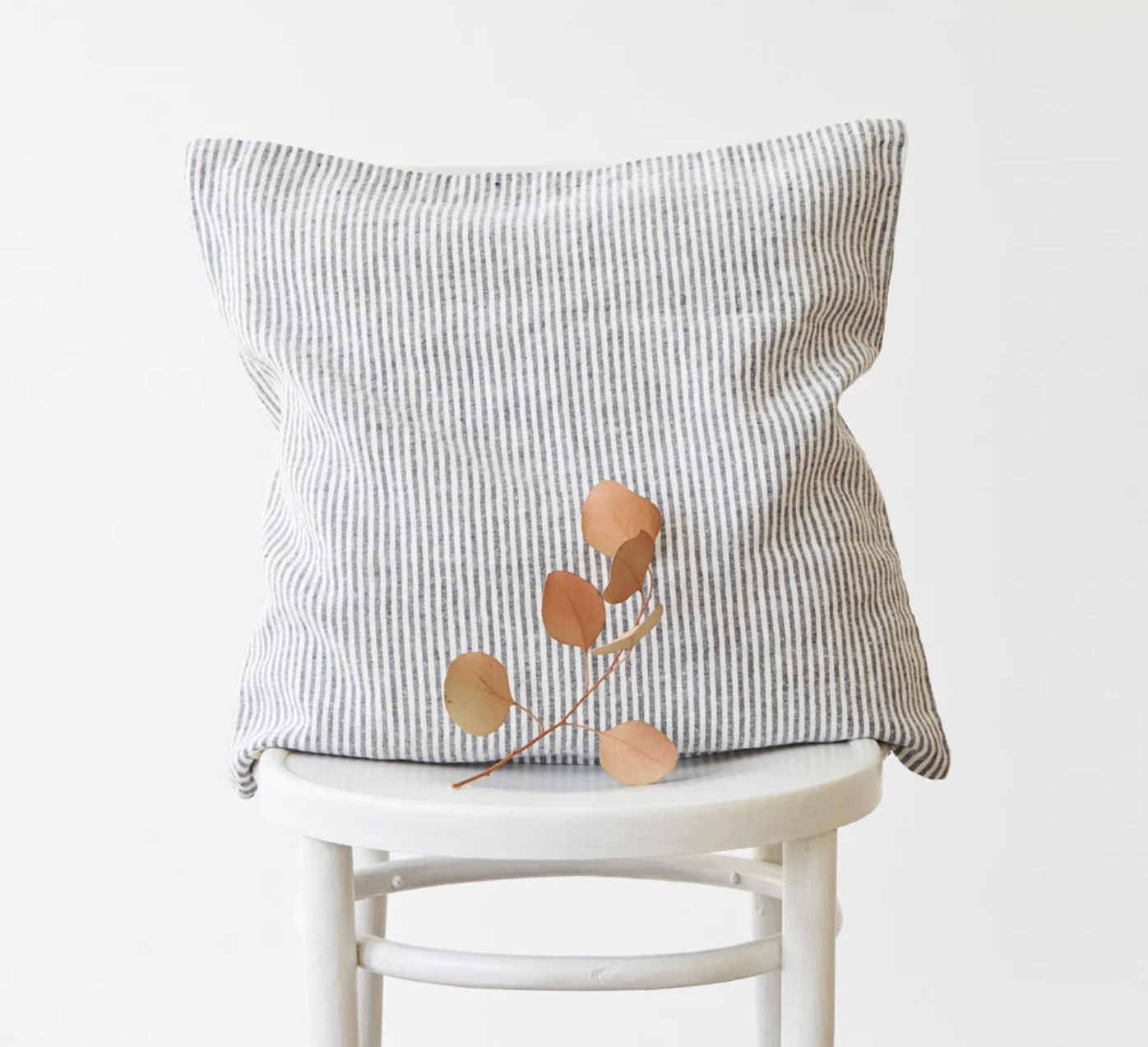 Linen Tales Square Pillowcase, Thin Black Stripe