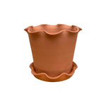 Paige Mitchell Frilly Plant Pot and Saucer - Terracotta