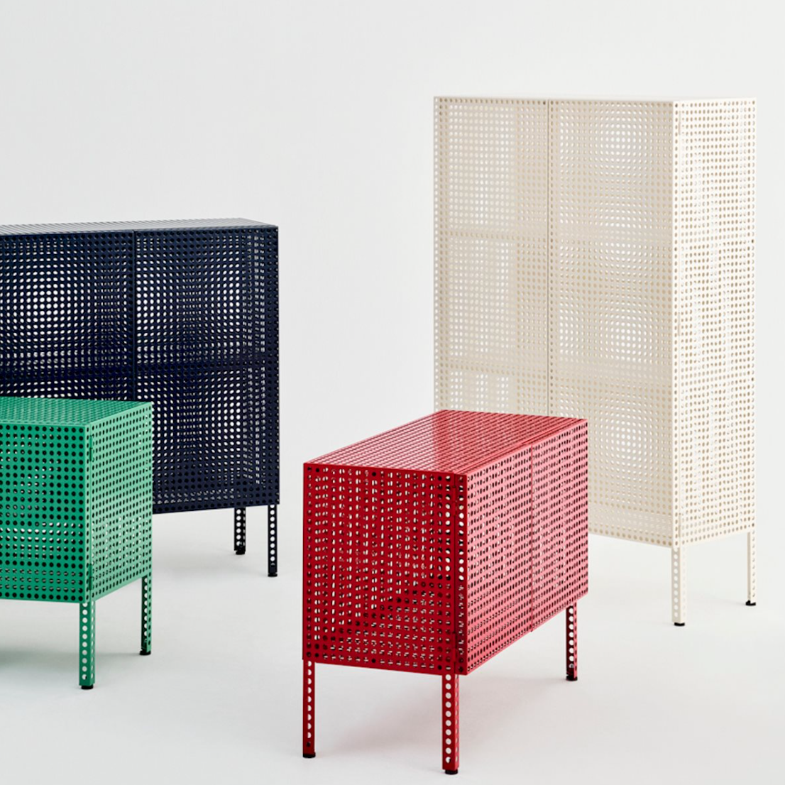 The Perforated Cabinet embodies Muller Van Severen’s signature blend of utility and bold aesthetics to deliver a series of functional storage units with an unmistakable presence.