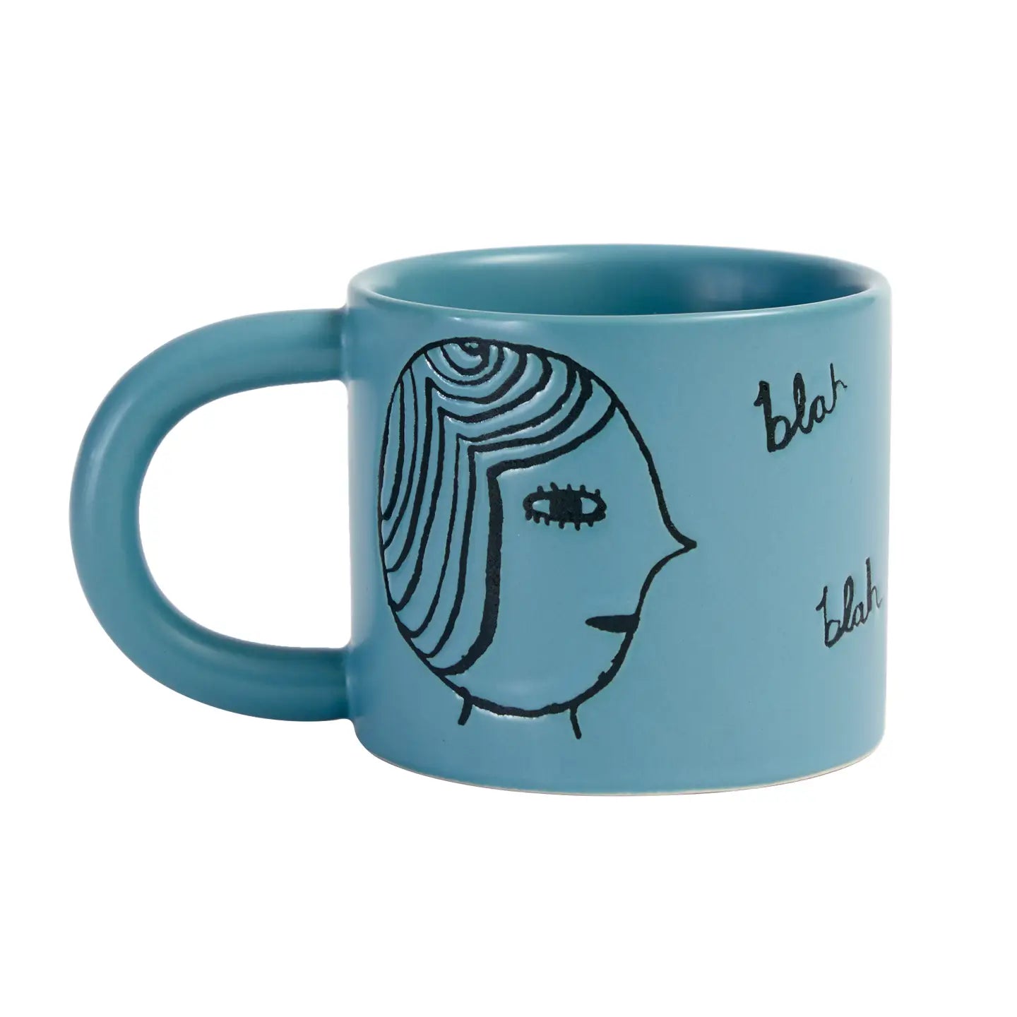 Blah blah blah . . . What goes better with a mug of tea than a proper chat? With this sturdy, tactile teal-blue mug with two debossed faces chatting to each other, you won't miss a drop while you're spilling the tea.