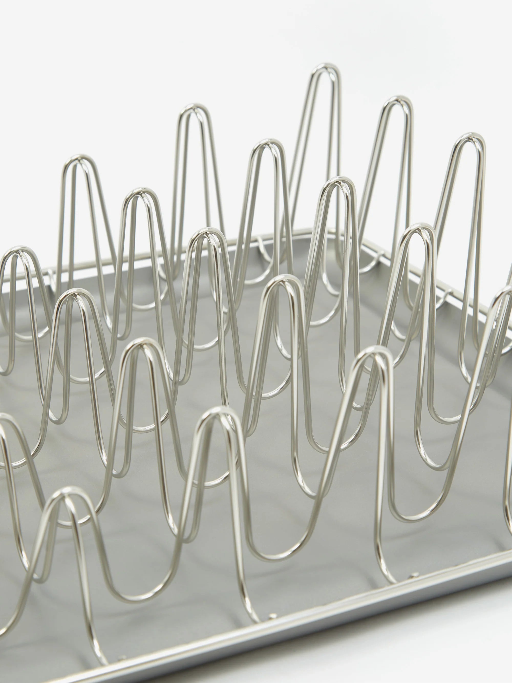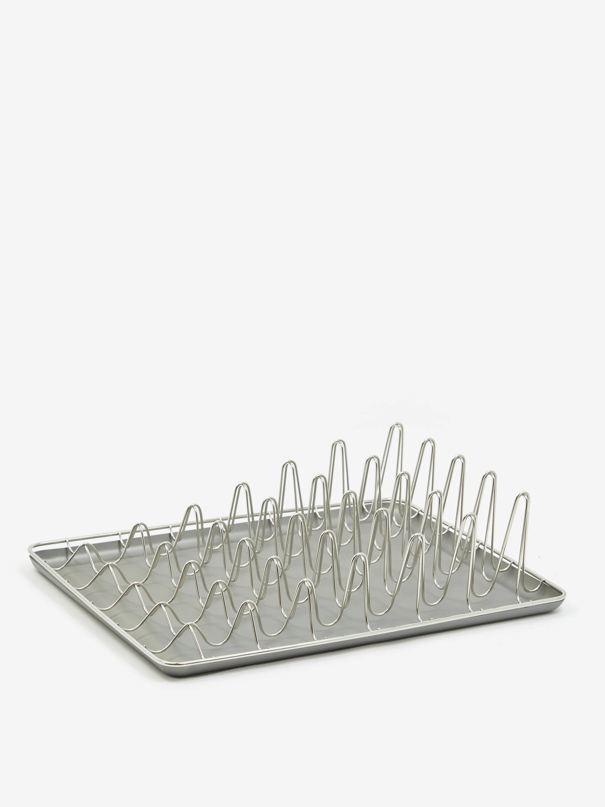 Leon Ransmeier's Shortwave Dish Rack for HAY uses undulating lines to create a strong design language that serves a functional purpose too. This stainless steel dish rack comes with a tray made to catch any excess water.