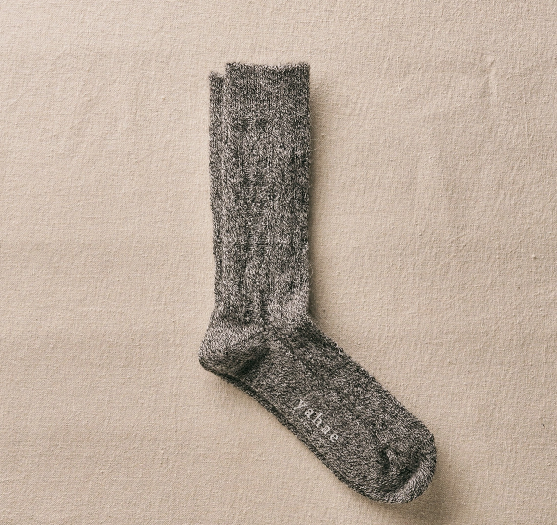 "Yahae" is a brand born in 2020, named after Yahee, the founder of our original cotton business. Based on the accumulation of past "history," we also value a perspective toward the "future" for sustainable manufacturing. The socks we designed after sharing our ideas ended up being socks that fit the time axis of the "now" and that you will want to wear all the time.