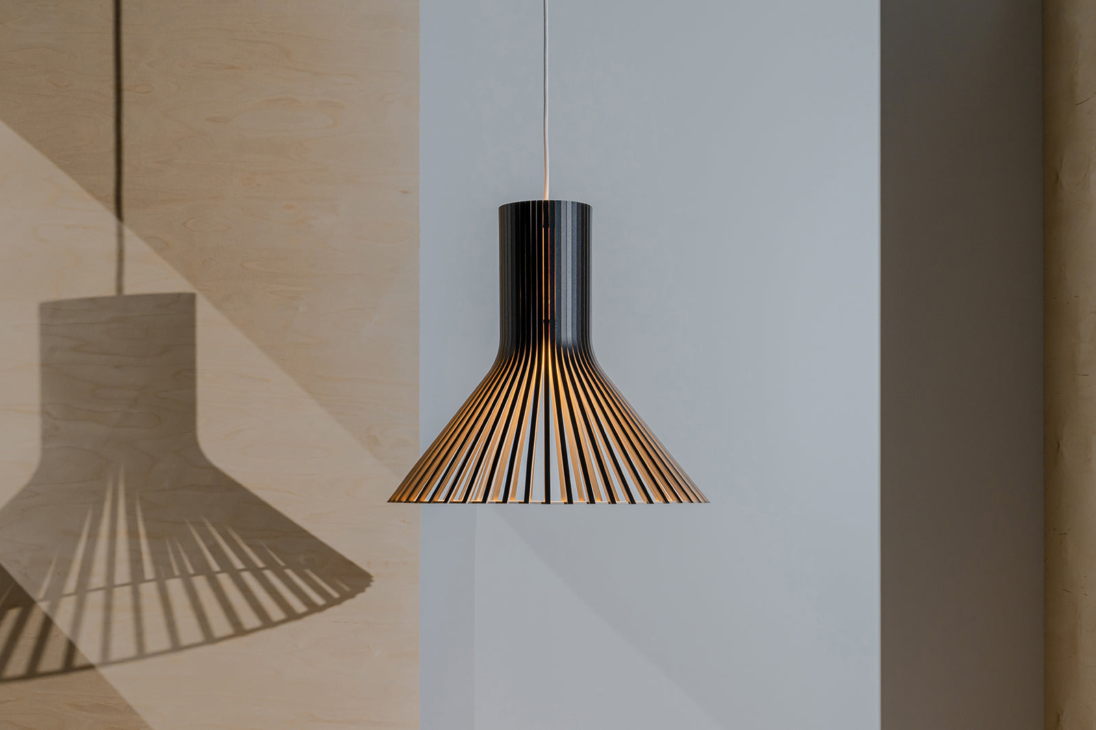 Light source E27 base, LED max 20 W. Comes with a LED bulb (Airam Pro LED, E27, 12 W, 1060 lumen, 3000 K, pure white, dimmable, may vary). The use of special bulbs such as halogen, mirror or 12 V bulbs in Secto Design lamps is prohibited, due to overheating.
