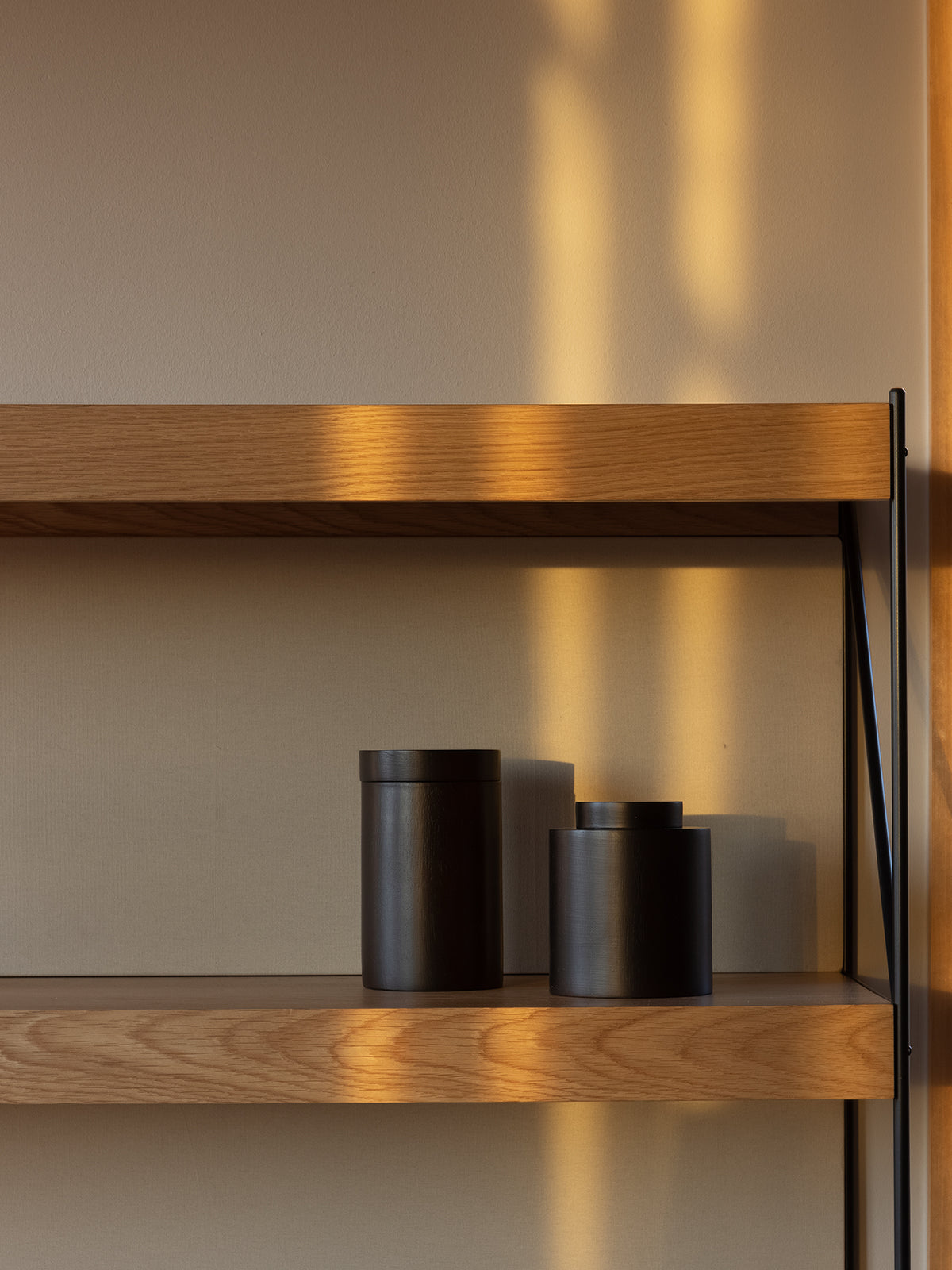 Put your objects in the spotlight with Zet, a modular shelving system that delivers on freedom and function. Easily assembled or disassembled and relocated whenever you want, its delicate balance of order, convenience and style is shaped from materials selected for beauty and endurance. Based on just two components - wooden U-shaped shelves and a metal frame construction defined by diagonal Z-struts – it comes in six colours and with optional display shelves and back panels.