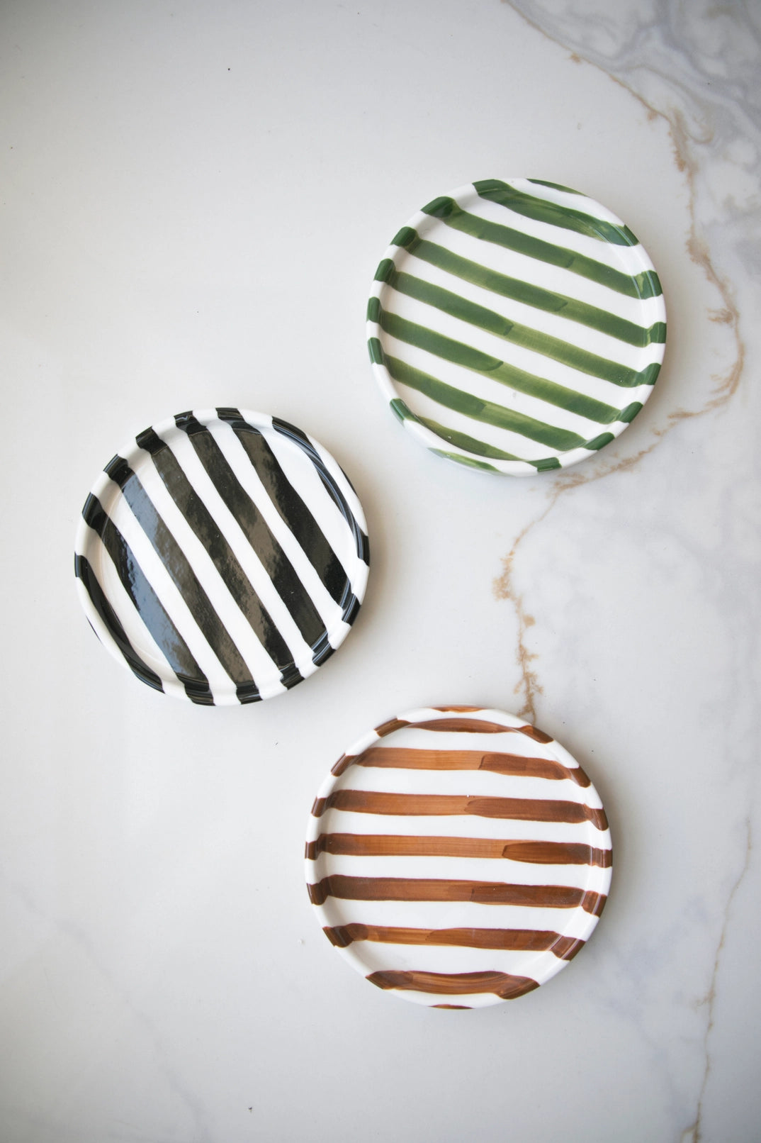Featuring a sleek and modern striped design, these plates are perfect for any occasion, combining functionality with timeless design. Size S: 12.7 x 1.7cm/5 x 0.66''