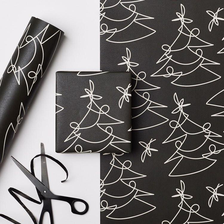 This wrap is for the minimalists, and matches the Tree Line cards, it looks chic in a velvet ribbon, minimal in twine with matching gift tags
