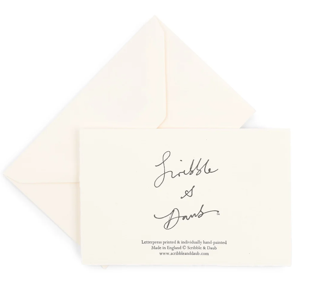 Every Scribble & Daub card is letterpress printed at our traditional local workshop on a hand-fed vintage press and then lovingly painted in our studio with Andy Warhol's' favourite coloured inks.