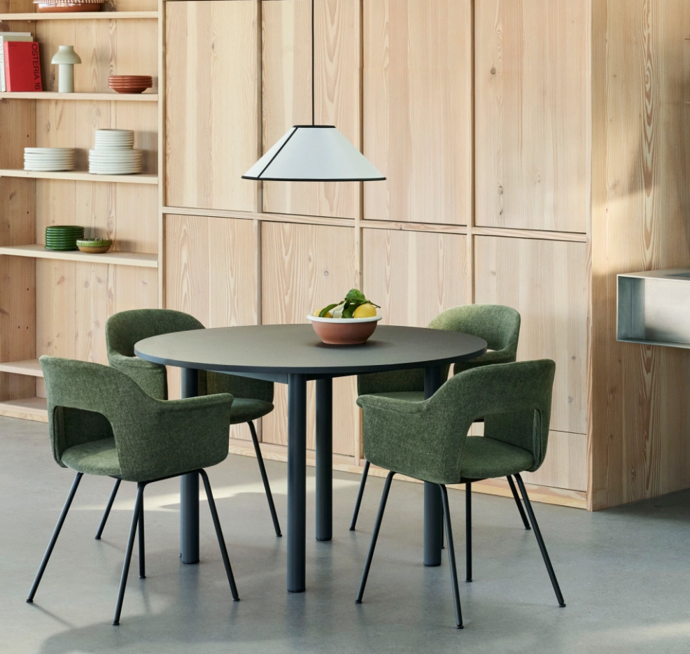 Designed for HAY by Ana Kraš, the Ava Cone Pendant Lamp combines an archetypal lamp shape with a bold, graphic design, creating a contemporary take on a classic empire pendant. Crafted from ECOPETTM derived from recycled PET plastic, the conical shade has a semi-translucent, paper-like quality that is offset by the contrasting fabric piping. Ava’s simple yet striking visual presence and soft, ambient glow allow it to be seamlessly integrated into numerous home spaces – suspended from ceilings in bedrooms, halls, living, and dining areas.