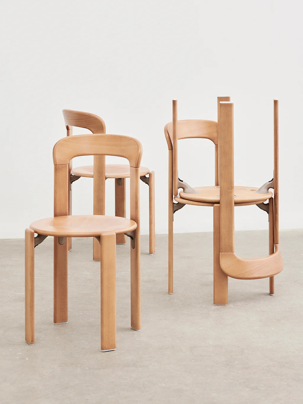 With its distinctively rounded edges and curved backrest, it was the first chair to be patented with Dietiker’s unique screwless wood-to-metal connection and has become one of the most successful Swiss chairs of all time. Its solid construction, strength and stackable design give it a timeless quality that makes it suitable for using in a wide variety of domestic, public or corporate settings.