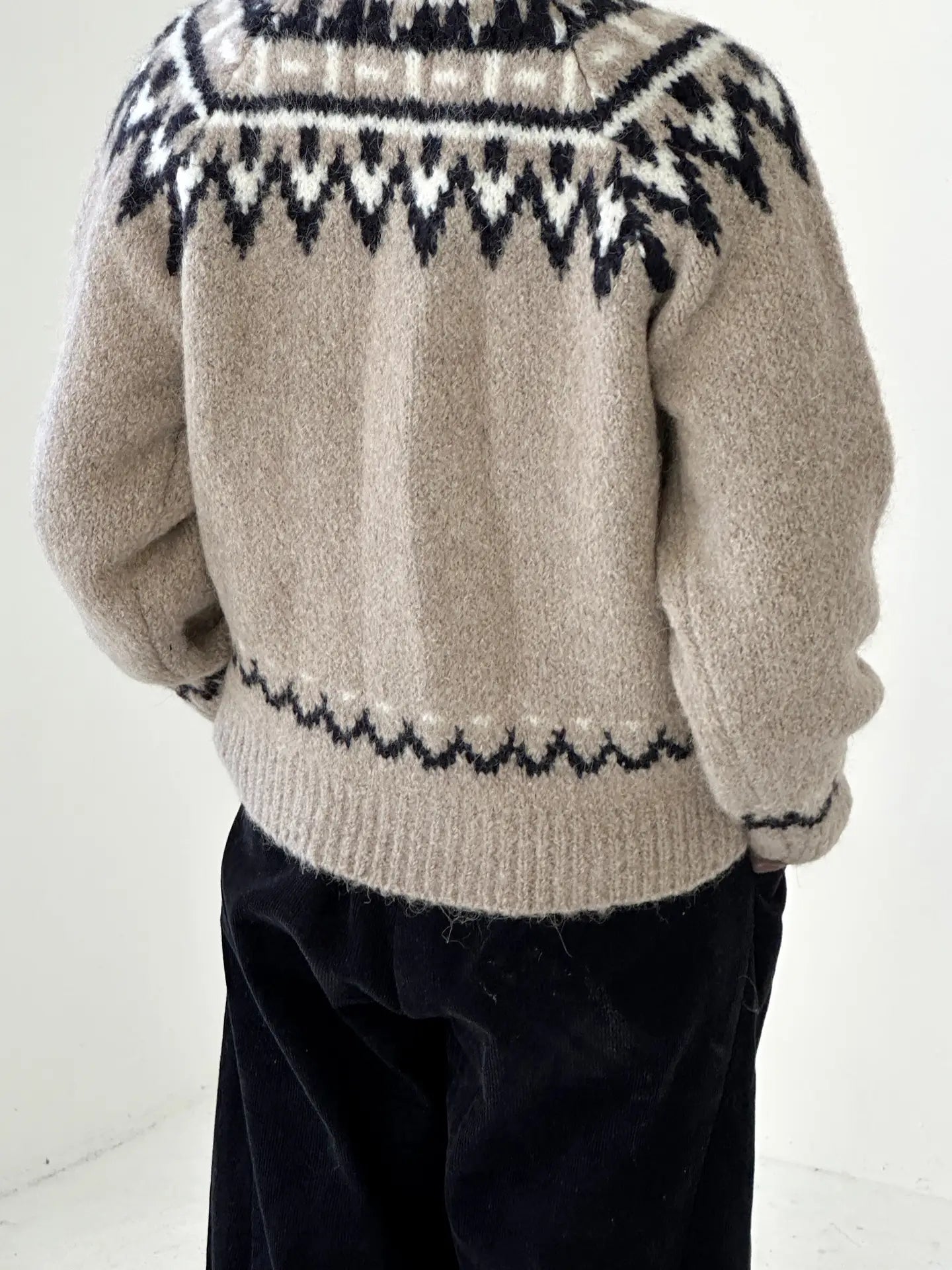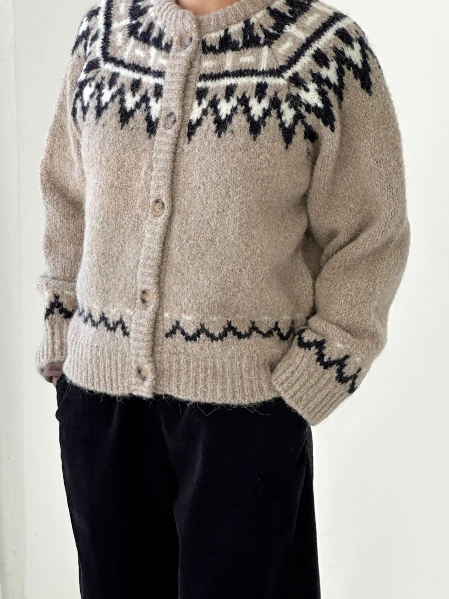 Why we made this? The reimagined nostalgic sweater, made to keep you warm. Crafted from an ultra-cozy alpaca blend, the Cabin Cardigan features a dreamy fair isle pattern, functional front buttons, and a relaxed fit. Perfect for layering through the cooler months.