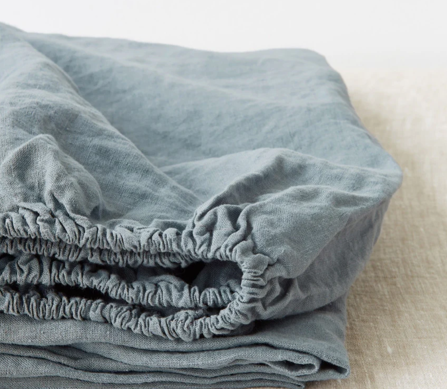 Linen Tales Linen Fitted Sheet, Blue Fog