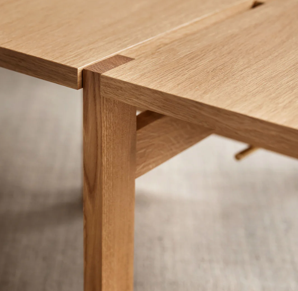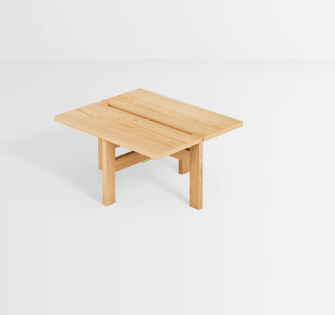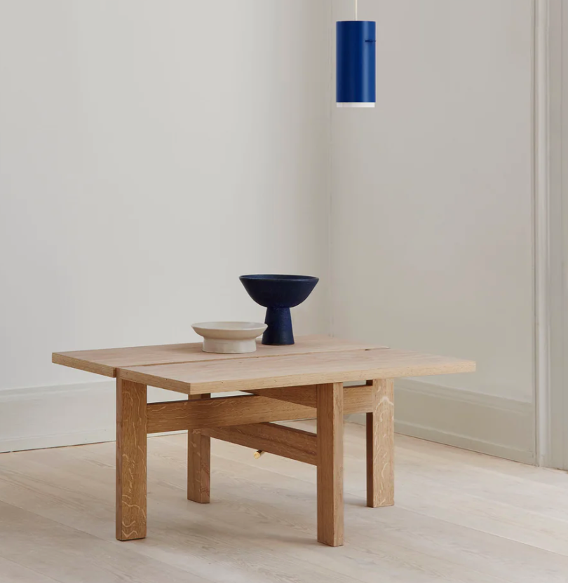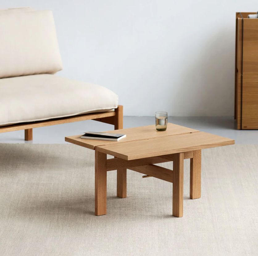 The MOEBE Rectangular Coffee Table is low in profile, standing just 30cm from the floor. The cross-shaped leg frame gives a feeling of space by suspending the tabletop along the middle and keeping the corners free. Each table arrives flat packed and is threaded together piece by piece via a brass screwing mechanism at its centre.