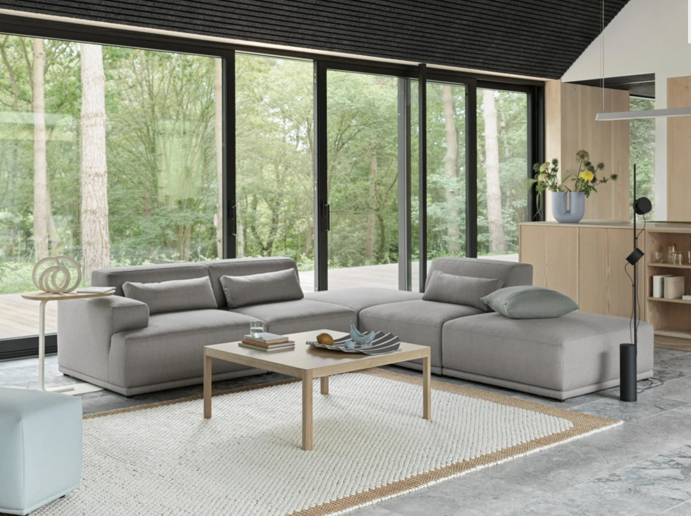 Muuto Workshop Coffee Table - Warm Grey Linoleum / Oak - 86cm x 86cm