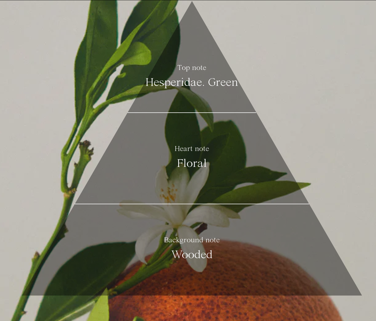 GALBANUM. ORANGE BLOSSOM . PETITGRAIN BIGARADE. VETIVER